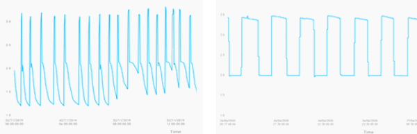 Pressure data before (left) and after (right) unblocking of the non-return valves. |